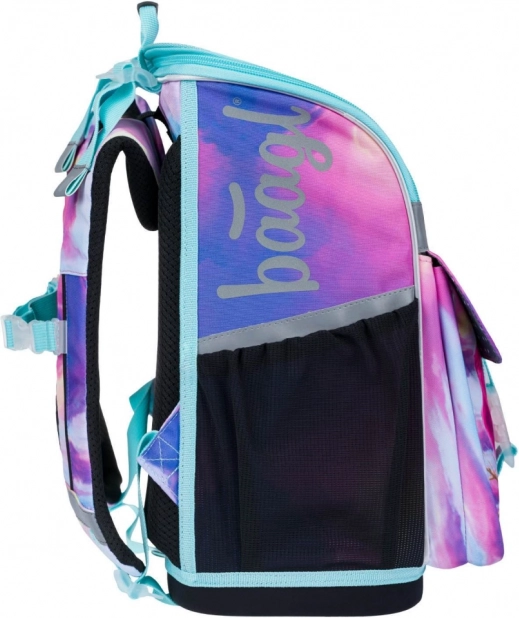 Der Ranzen verfügt über seitliche Netztaschen für Getränke und reflektierende Elemente, um die Sicherheit des Kindes auf dem Schulweg zu erhöhen.