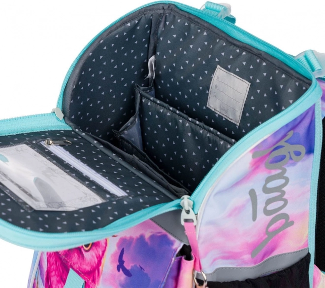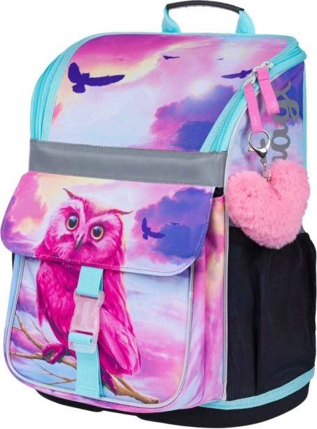 Der Ranzen mit einzigartigem Eulendesign zieht Aufmerksamkeit auf sich und fügt einen unterhaltsamen Aspekt zur Schulausstattung hinzu.