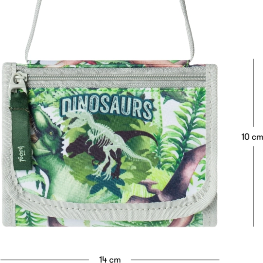 Die stylische Hals-Geldbörse mit auffälligem Dinosauriermotiv ist ideal für Kinder in der Schule, bei Freizeitaktivitäten und auf Ausflügen. Dank der robusten Textilverarbeitung ist sie bestens für den täglichen Gebrauch geeignet und bleibt dennoch leicht und angenehm zu tragen.