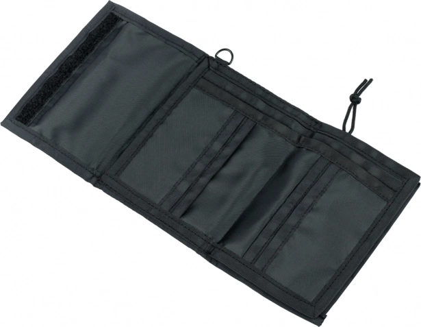 Dank des Klettverschlusses schließen Sie die Geldbörse schnell und einfach – sogar unterwegs. Die praktische Öse ermöglicht die Befestigung an einem Karabiner, Schlüsselbund oder einer Schlaufe im Rucksack, sodass Sie sie immer griffbereit haben und das Verlustrisiko minimieren.