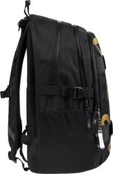 An der Front befinden sich zwei Riemen zur einfachen Befestigung eines Skateboards. Seitliche, robuste Netztaschen bieten Platz für eine Trinkflasche.
