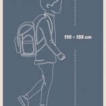 Ergonomisch geformter Rücken, verstellbare Schulter- und Brustgurte, atmungsaktive Polsterung und reflektierende Elemente sorgen für Komfort und bessere Sichtbarkeit.