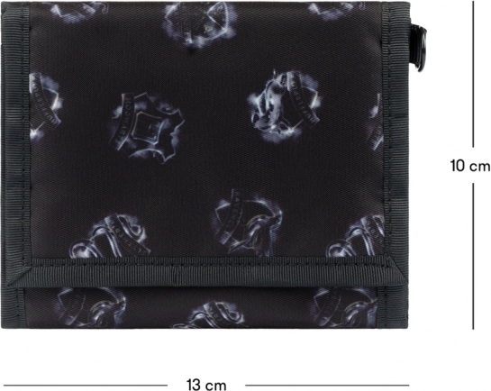 Das schwarze Muster mit Hogwarts-Motiven verleiht dem Portemonnaie ein einzigartiges Aussehen.