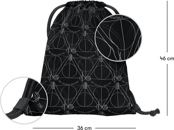 Das Design ziert ein wiederkehrendes Muster des Symbols der Heiligtümer des Todes, was dem Rucksack ein einzigartiges und stilvolles Aussehen verleiht, ideal für Harry Potter Fans.