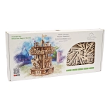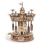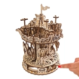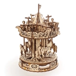 Gönnen Sie sich ein elegantes Karussell aus hochwertigem Sperrholz, das Nostalgie mit raffinierter Mechanik verbindet. Dank des Gummi-Aufziehantriebs drehen sich Mittelstütze und Dach in entgegengesetzte Richtungen und erzeugen so eine optische Illusion hoher Geschwindigkeit. Die Pferde steigen sanft auf und ab, und über dem Karussell kreisen kleine Vögel – all das ist durch das offene Design wunderbar sichtbar.