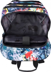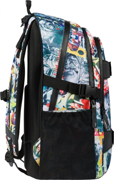 Der Rucksack ist auf Komfort und Funktionalität ausgelegt. Er enthält seitliche Netztaschen, ideal für eine Trinkflasche. Die vordere Kammer des Rucksacks ist mit zwei Gurten für die Befestigung eines Skateboards ausgestattet, sodass Sie Ihr Skateboard problemlos überallhin mitnehmen können. Das Gesamtvolumen des Rucksacks beträgt 25 Liter, mit einer Tragfähigkeit von bis zu 7 kg.