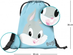 Der Vorschulbeutel Bugs Bunny kombiniert verspieltes Design mit praktischer Nutzung. Sein Zuziehen mittels stabiler Kordeln ermöglicht ein einfaches Schließen und Tragen auf dem Rücken. Dank des waschbaren Materials bleibt er lange in perfektem Zustand.