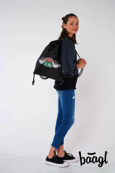 Eleganter schwarzer Beutel mit 'Central Perk' Logo ist eine großartige Wahl für Fans der Serie Friends. Perfekt zum Transport persönlicher Gegenstände.