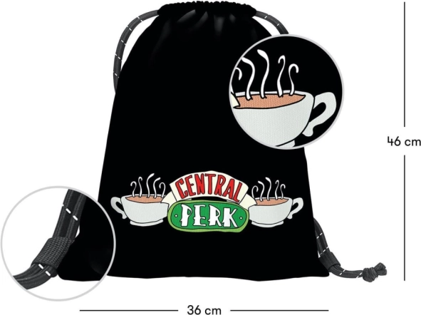 Der Schuhbeutel mit 'Central Perk' Motiv aus der beliebten Serie Friends ist ein tolles Accessoire für Fans. Dieser stylische und praktische Beutel ist aus robustem und waschbarem Textilmaterial gefertigt. Dank des Zugverschlusses mit starken Kordeln kann er leicht auf dem Rücken getragen werden.