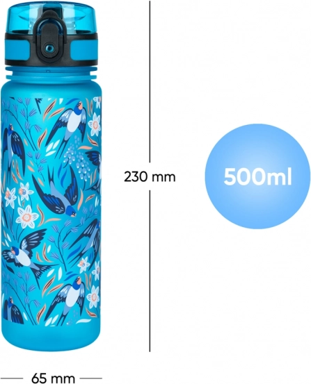 Das Schwalben- und Blumenmotiv verleiht der Flasche einen verspielten Look, während die Schlaufe den Transport auf dem Weg zur Schule, zum Training oder auf Ausflügen erleichtert. Durch die Nutzung einer wiederbefüllbaren Flasche reduzieren Sie den Verbrauch von Einwegplastik und unterstützen einen nachhaltigen Lebensstil.