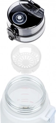 Leichte und robuste Flasche aus zertifiziertem Tritan für komfortable Hydration den ganzen Tag. Dank des cleveren Deckels mit Verriegelung geht kein Tropfen verloren, und das Flip-Top-Mundstück ermöglicht schnelles Trinken mit einer Hand. Das integrierte Sieb ist ideal für aromatisiertes Wasser mit Obst sowie für Tee – das Material ist auch für heiße Getränke geeignet.