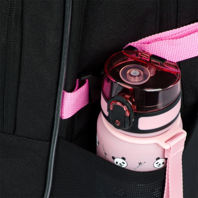 Seitentaschen für eine Flasche und reflektierende Elemente für zusätzliche Sicherheit.