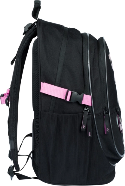 Der Rucksack besteht aus wasserabweisendem Material und sein geringes Gewicht (900 g) sorgt für einfaches Handling. Das Volumen beträgt 25 Liter bei einer Traglast von 7 kg. Der Rucksack ist mit reflektierenden Elementen für erhöhte Sicherheit und einem trendigen, flauschigen Anhänger als elegantes Detail ausgestattet.