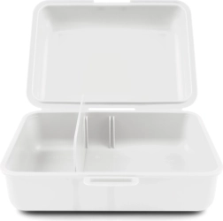 Praktische weiße Plastik-Snackbox mit atemberaubendem Rainbow Unicorn-Design, ideal für Kinder. Dank sicherem Verschluss und Trennwand ermöglicht sie eine einfache Unterteilung der Speisen und hält diese frisch.
