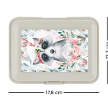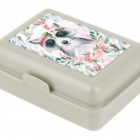Praktische Snackbox mit Waschbärmotiv, die nicht nur Kinder anspricht. Elegantes und funktionales Design in beiger Farbe mit Trennfach.
