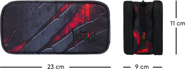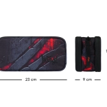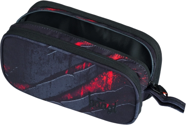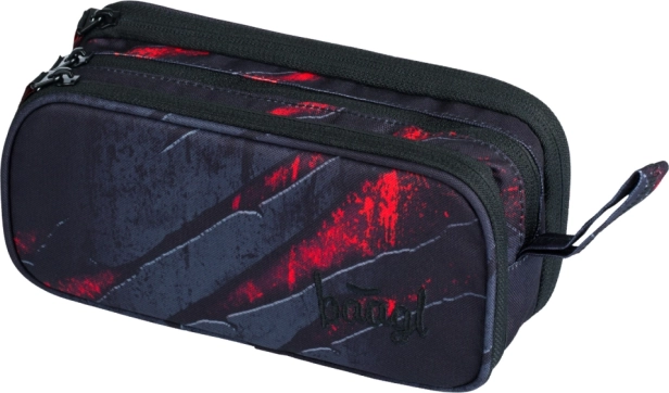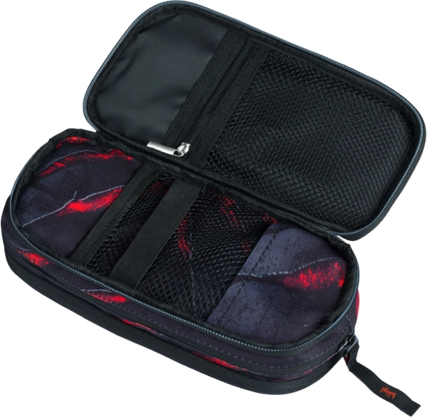 Das einzigartige schwarz-rote Design aus robustem Textilmaterial macht dieses Federmäppchen nicht nur praktisch, sondern auch zu einem modernen Accessoire.