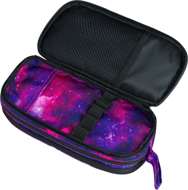 Das Schülermäppchen Galaxy kombiniert Funktionalität und Stil mit einem einzigartigen Galaxiedesign in Violett- und Rosatönen. Es besteht aus hochwertigem Textil und bietet drei separat verschließbare Fächer mit Reißverschluss zur einfachen Trennung und Organisation Ihrer Utensilien. Die Außenfläche besteht aus langlebigem Material, das den Inhalt des Mäppchens schützt. Dank der übersichtlichen Innenaufteilung finden Sie Platz für verschiedene Kleinigkeiten wie Radiergummis, Spitzer und andere Schulbedarfsartikel. Eine praktische Schlaufe ermöglicht das einfache Tragen des Mäppchens oder das Aufhängen an einem Schulrucksack.