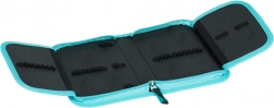 Elegantes Mäppchen in Türkis mit auffälligem Schmetterlingsmotiv, das Stil und Funktionalität verbindet. Dank zwei Innenklappen, Gummischlaufen und Fächern sind Schreibwaren und kleine Schulutensilien stets übersichtlich verstaut und per Reißverschluss sicher verschlossen.