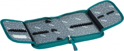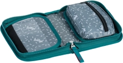 Das Schulmäppchen besteht aus strapazierfähigem Textilgewebe, das eine lange Lebensdauer gewährleistet. Die robuste Oberfläche ist mit einem dekorativen Muster versehen, das die optische Attraktivität erhöht.