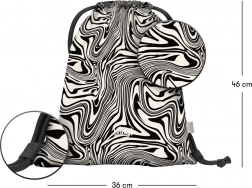 Dieser praktische Beutel ist aus robustem, abwaschbarem Material gefertigt und sein elegantes schwarz-weißes psychedelisches Design zieht die Aufmerksamkeit eines jeden auf sich. Der Verschluss erfolgt durch stabile Schnüre, die gleichzeitig als bequeme Träger zum Tragen auf dem Rücken dienen.