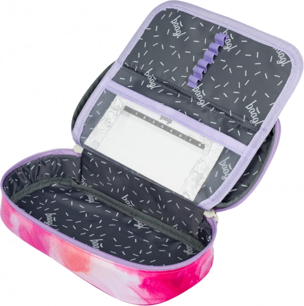 Das Federmäppchen bietet eine aufklappbare Innenklappe, eine Reißverschlusstasche und Platz für einen Stundenplan, was die Organisation aller Schulutensilien erleichtert.