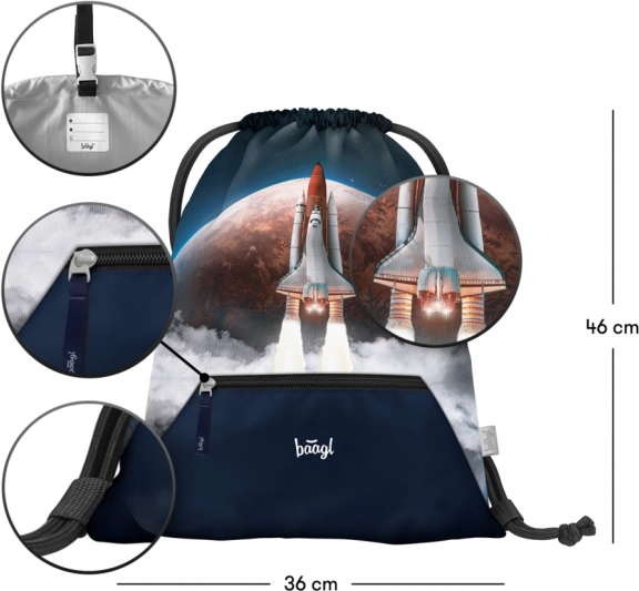 Der BAAGL Beutel Space Shuttle ergänzt die Schulausstattung perfekt dank des Karabiners, der seine Befestigung an der Schultasche ermöglicht. Er besteht aus robustem Material, das lange Lebensdauer und einfache Pflege gewährleistet. Im unteren Teil des Beutels befindet sich eine praktische Reißverschlusstasche zur Aufbewahrung kleiner Gegenstände.