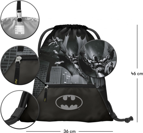 Auf dem Beutel ist ein Batman-Motiv zu finden, das stilvoll und attraktiv nicht nur für Comic-Fans wirkt.