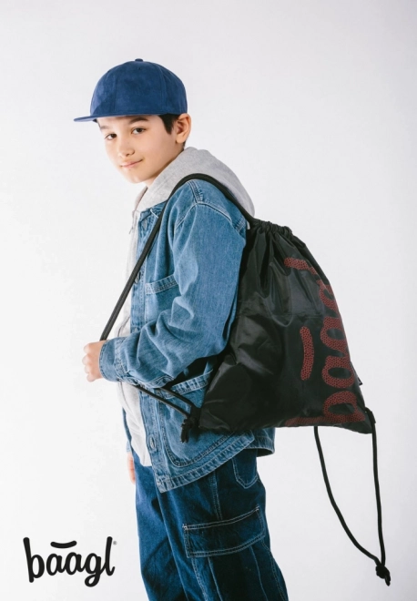 Die Baagl Skate Tasche mit ihrem roten Logo und modernen Aussehen ist eine stilvolle Wahl für jeden Tag.