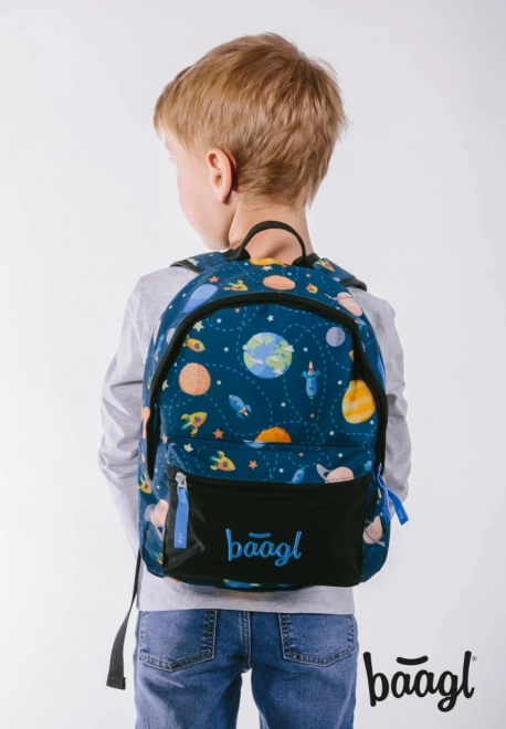 Suchen Sie einen Rucksack, der Kindern hervorragend passt, einiges aushält und den sie gern tragen? Der BAAGL Vorschulrucksack Planeten vereint Komfort, Sicherheit und praktische Organisation. Das Weltraum-Motiv mit Planeten und Raketen beflügelt die kindliche Fantasie, während die durchdachte Verarbeitung täglichen Komfort gewährleistet.