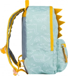 Der auffällige türkisfarbene Rucksack mit fröhlichem Dinosaurierprint und verspielten Details fällt sofort ins Auge und steigert die Freude am täglichen Tragen.
