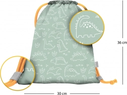 Der stylische Beutel mit DINOSAURIER-Motiv begeistert Kinder für Kindergarten und Freizeit. Dank des strapazierfähigen und pflegeleichten Materials hält er dem täglichen Gebrauch stand und schützt Hausschuhe, Schuhe oder andere Kleinigkeiten.