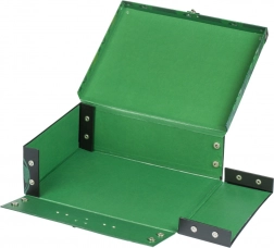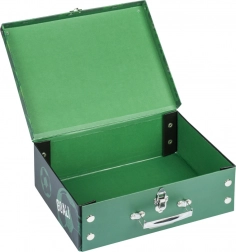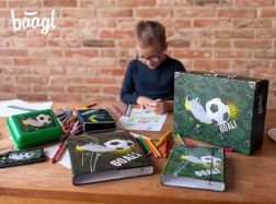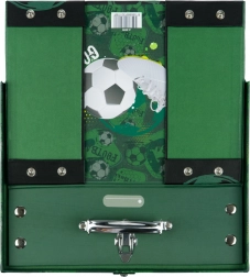 Suchen Sie einen robusten und zugleich designstarken Schulkoffer zum Transport von Bastelmaterial, Heften oder Kleinigkeiten? Der faltbare Schulkoffer BAAGL mit Fußballmotiv überzeugt nicht nur optisch, sondern auch funktional. Der feste laminierte Karton und die verstärkten Metallecken sorgen für Langlebigkeit, Metallbeschläge geben Stabilität und die klassische Schnalle hält den Inhalt sicher.