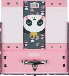 Der Metallgriff liegt gut in der Hand und die klassische Schnalle hält den Inhalt sicher im Inneren. Der Koffer eignet sich hervorragend für Bastelmaterialien, Hefte, kleine Spielsachen oder Reiseschätze. Das niedliche Pandamotiv und rosafarbene Töne machen ihn zum beliebten Begleiter für Schule und unterwegs.