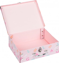 Der faltbare BAAGL Logo Koffer in Rosa vereint verspieltes Design mit praktischer Funktionalität. Stabiler laminierter Karton und beschlagene Ecken sorgen für lange Haltbarkeit, während Metallgriff und zuverlässige Schnalle den Alltag in Schule und Zuhause erleichtern.
