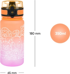 Diese Kinderflasche aus hochwertigem Tritan ist ideal für Schule, Ausflüge und Sport. Dank des abschließbaren Deckels tritt kein Tropfen aus, und die praktische Schlaufe erleichtert das Tragen. Der attraktive orange-rosa Farbverlauf mit Tiermotiven wird Kindern gefallen.