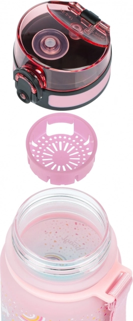 Der verriegelbare Deckel lässt keinen Tropfen auslaufen und sorgt für eine einfache, intuitive Handhabung. Teil der Flasche ist auch ein Sieb, dank dem Sie die Flasche für Limonaden mit Obst oder für Tee verwenden können (das Material ist auch für heiße Getränke geeignet). An der Flasche ist außerdem eine Schlaufe für bequemes Tragen in der Hand befestigt.