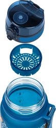 Praktische und sichere Tritan-Trinkflasche mit 350 ml Fassungsvermögen für Kinder und Erwachsene. Sie hat einen auslaufsicheren, verriegelbaren Deckel, eine bequeme Trageschlaufe und ein Sieb für Obst oder Tee. Hergestellt aus zertifiziertem Tritan ohne BPA, PVC und Phthalate, das keine Gerüche annimmt und auch für heiße Getränke geeignet ist.