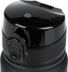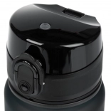 Der Deckel mit Knopf für schnelles Öffnen verhindert das Auslaufen im Rucksack und ermöglicht bequemes Trinken mit einer Hand – ideal für Schule und Sport.