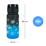 Diese BAAGL-Tritanflasche mit 350 ml Volumen in einem attraktiven Verlauf von Schwarz zu Blau ist ein zuverlässiger Begleiter für den täglichen Trinkrhythmus. Der verriegelbare Deckel verhindert ungewolltes Auslaufen und ermöglicht ein schnelles, intuitives Öffnen mit einer Hand. Dank des integrierten Siebs genießen Sie Wasser mit Obst ebenso wie losen Tee – das Material ist auch für heiße Getränke geeignet.