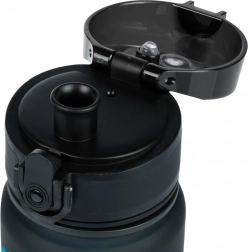 Der Deckel mit Sicherung und ausklappbarem Trinkstutzen verhindert ein unbeabsichtigtes Öffnen in der Tasche und sorgt für sauberes und bequemes Trinken unterwegs.