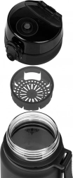 Der Flip-Top-Deckel mit Sicherung verhindert ein unbeabsichtigtes Öffnen und dichtet zuverlässig ab. So bleibt das Getränk auch in Bewegung im Rucksack in der Flasche.