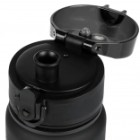 Flip-Top-Deckel mit Sicherung bleibt fest verschlossen, ermöglicht einfaches Trinken mit einer Hand und verhindert Leckagen im Rucksack.