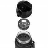Der praktische Flip-Deckel mit Sicherung verhindert ein unbeabsichtigtes Öffnen im Rucksack und sorgt für bequemes Trinken mit einer Hand. Enthalten ist ein herausnehmbarer Einsatz für Fruchtgetränke oder Tee; das Material ist auch für heiße Getränke geeignet. Die integrierte Trageschlaufe erleichtert den Transport – perfekt für Schule, Training und unterwegs.