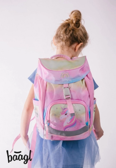 BAAGL SET 3 Airy Rainbow Unicorn: Schulranzen, Federmäppchen, Beutel