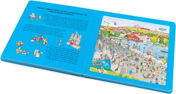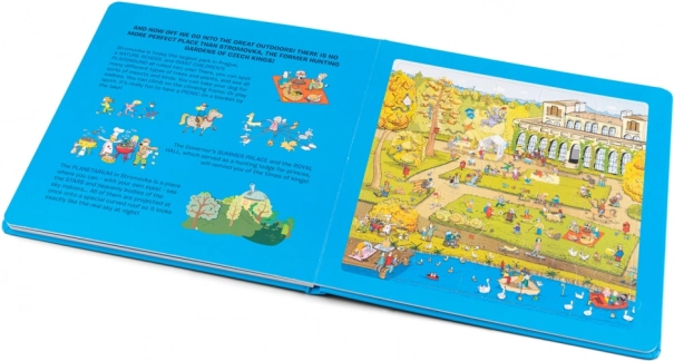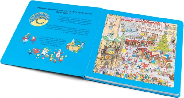 Eine praktische Möglichkeit, wie Ihre Kinder spielerisch Prag entdecken können, indem sie die Puzzles auf jeder Buchseite zusammenlegen.