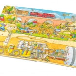 In der Stadt ist immer etwas los – es wird gegraben, repariert, gebaut und verschönert. Kinder suchen auf den Seiten nach Lastwagen, Betonmischern, Baggern, Kränen oder Gabelstaplern, lernen die Arbeit der Handwerker kennen und sehen, wie Vorarbeiter und Bauleitung alles im Blick behalten. Auch Architekt, Fotograf und Gärtner fehlen nicht – dazu viele Figuren mit eigenen Mikrogeschichten. Dieses Kinderbuch über die Baustelle ist ein großartiges Such- bzw. Wimmelbuch, das Ausdrucksfähigkeit und Aufmerksamkeit ganz natürlich fördert.