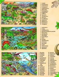 Auf jeder Seite findet ihr detaillierte, wunderschön farbige Illustrationen voller urzeitlicher Wesen sowie unterhaltsame Aufgaben für aufmerksame Augen: Einige Saurier gilt es immer wieder zu suchen. Das Buch ist kindgerecht und verständlich geschrieben und bietet am Ende einen vollständigen Überblick über die Namen der abgebildeten Dinosaurier.