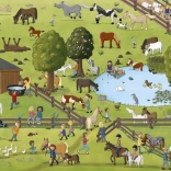 Dieses Bilderbuch für Kinder nimmt Sie mit auf einen ganzen Tag in die Welt der Pferde und Ponys. Sie blicken in das Leben auf dem Reiterhof, gehen auf einen Ausritt, fiebern bei Pferderennen mit und beobachten Hengste, Stuten und Fohlen auf der Weide. Auf jeder Doppelseite finden Sie wiederkehrende Figuren und Tiere, die Sie immer wieder neu entdecken können – die interaktive Suchaufgabe fördert Beobachtungsgabe, Konzentration und die Freude am Entdecken.