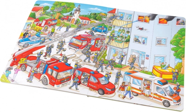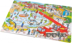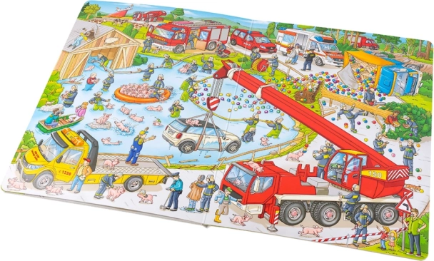 Dieses große Bilderbuch führt kleine Leser in die actionreiche Welt der Feuerwehr. Kinder sehen, wie ein Einsatz vorbereitet wird, wie die lange Leiter, Spritzen und weitere Technik funktionieren und wie Menschen aus brennenden Häusern gerettet werden. Die Illustrationen sind detailreich und laden zum Erzählen von Geschichten ein.