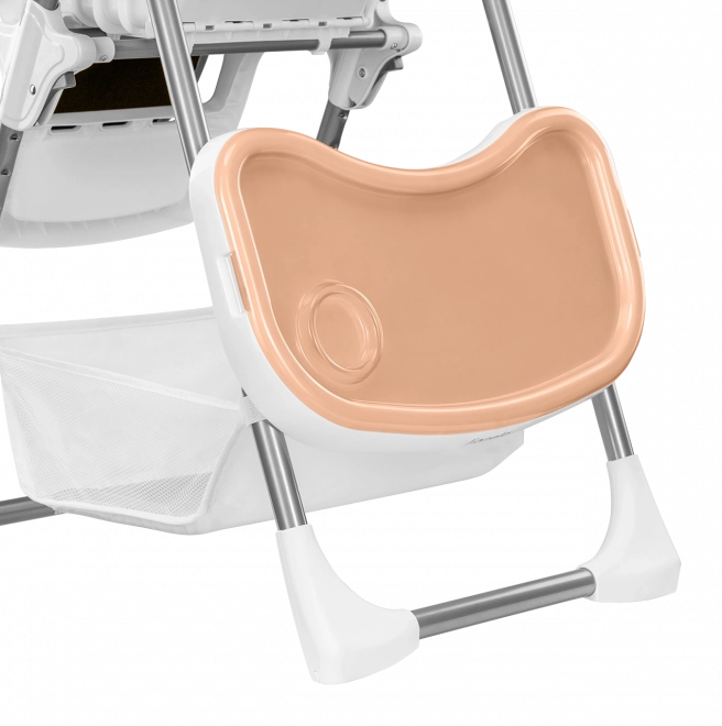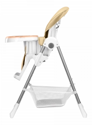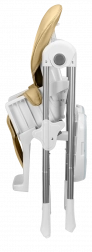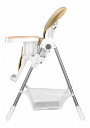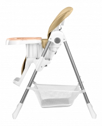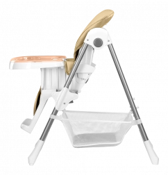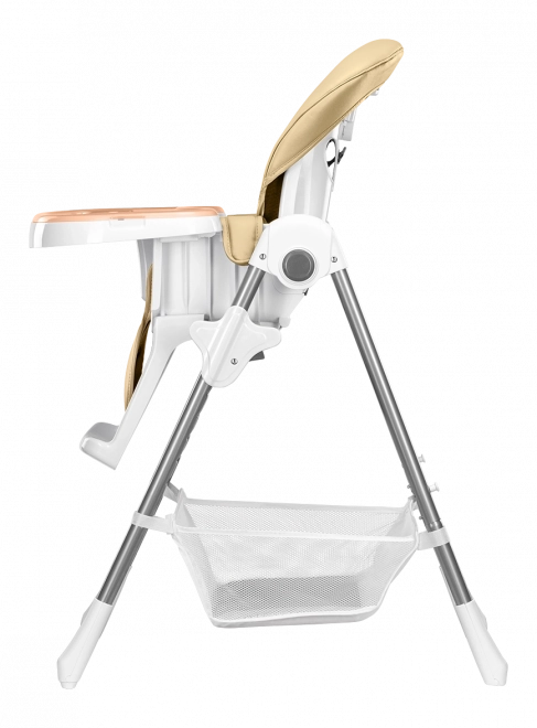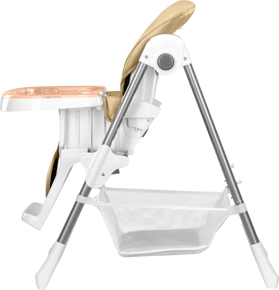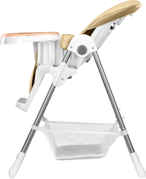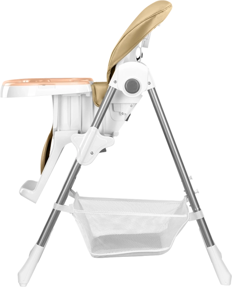 Für Sicherheit sorgen 5-Punkt-Gurte, eine verstärkte Konstruktion und rutschhemmende Auflagen. Praktische Details wie eine abnehmbare Fußstütze, ein großer Korb für Spielzeug und Zubehör sowie Rollen für den Transport erleichtern den Alltag. Nach dem Essen lässt sich der Stuhl in wenigen Sekunden auf eine platzsparende Breite von etwa 30 cm zusammenklappen.